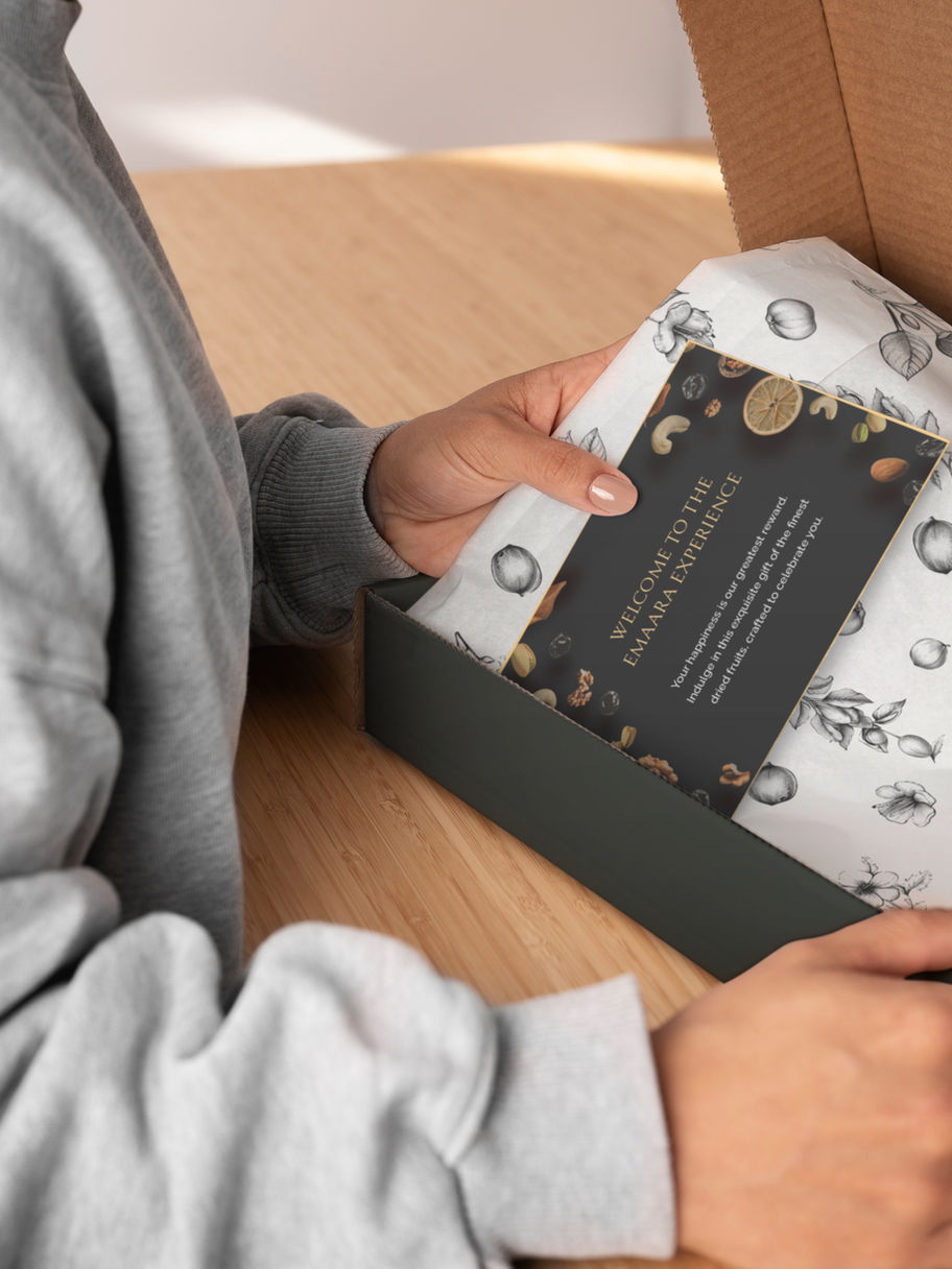 Treat yourself to the best with Emaara Luxe Trio. This 220g pack showcases our top picks—almonds, cashews, and raisins—in a beautifully designed package that is sure to impress. Whether you're snacking at home or on the go, this premium mix is a delicious and satisfying choice.